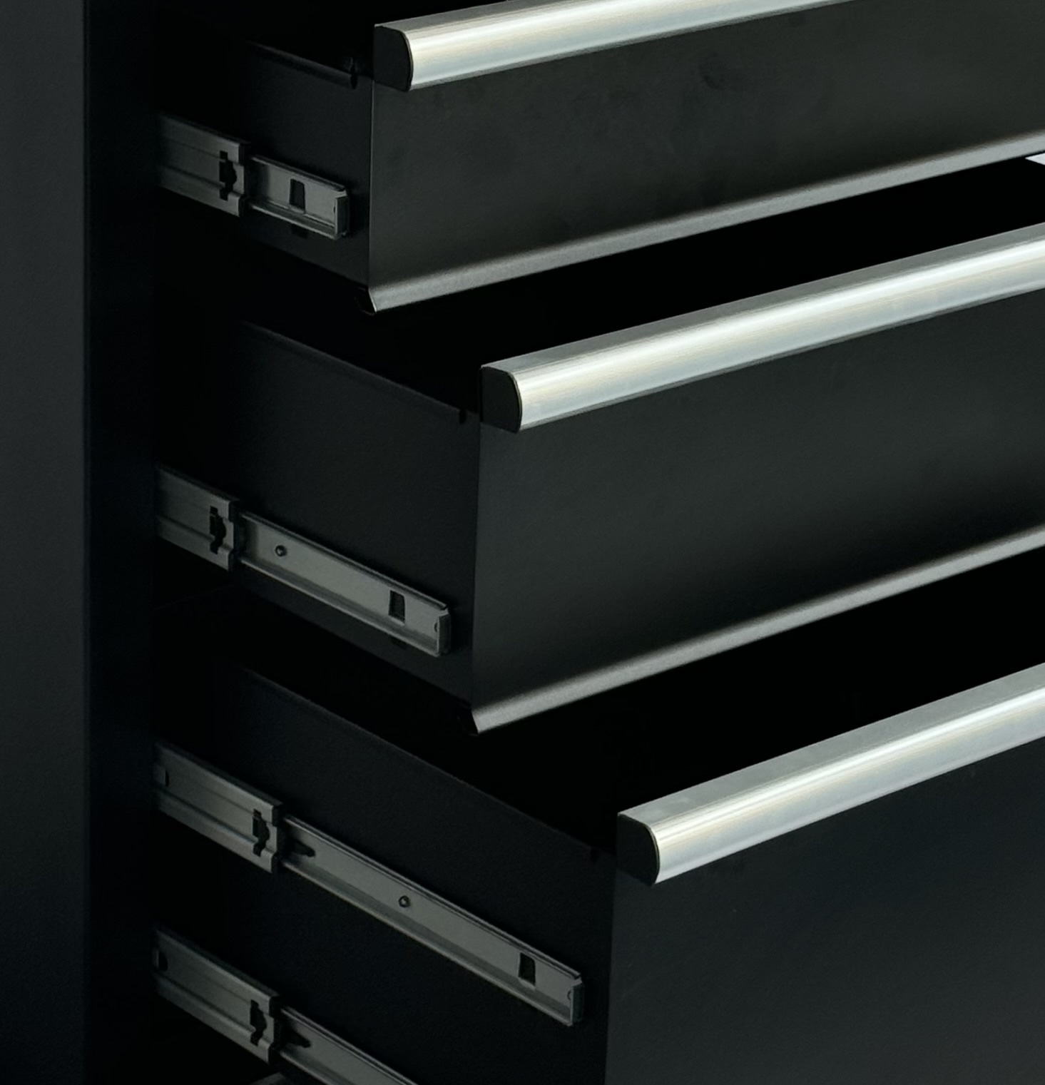 Tủ dụng cụ 7 ngăn kéo có mặt ván gỗ kèm ray đóng êm CSPS THÔNG SỐ KỸ THUẬT 1) THÔNG SỐ CHUNG Kích thước sản phẩm: 76,5 cm W x 46,2 cm D x