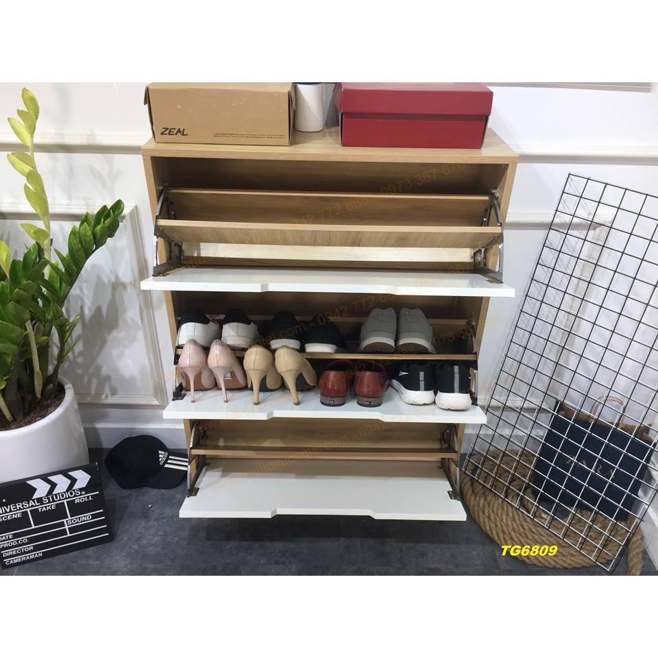 Hình ảnh thực tế tủ đựng giầy dép thông minh cánh lật 3 tầng gỗ công nghiệp TGD04