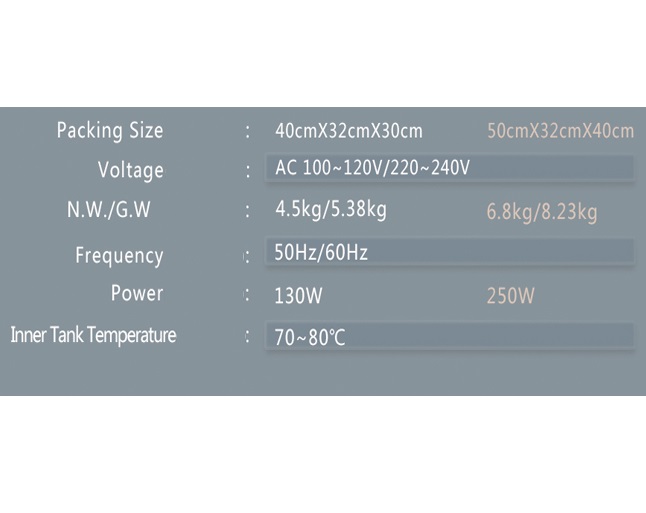 Một hệ thống sưởi ấm độc đáo được sử dụng để biến đổi năng lượng điện thành năng lượng sưởi ấm và năng lượng sưởi ấm sau đó được chuyển giao bởi bức xạ hồng ngoại. Có điều khiển nhiệt độ tự động hệ thống có sẵn. Khi bật chức năng giữ nhiệt, nhiệt độ bên trong máy sẽ tăng liên tục cho đến khi đạt đến nhiệt độ đã định. Sau đó, hệ thống sẽ nhập tình trạng bảo quản nhiệt độ tự động. Khi nhiệt độ trở nên thấp hơn so với chỉ định nhiệt độ, chức năng sưởi ấm sẽ tự động bắt đầu lại.