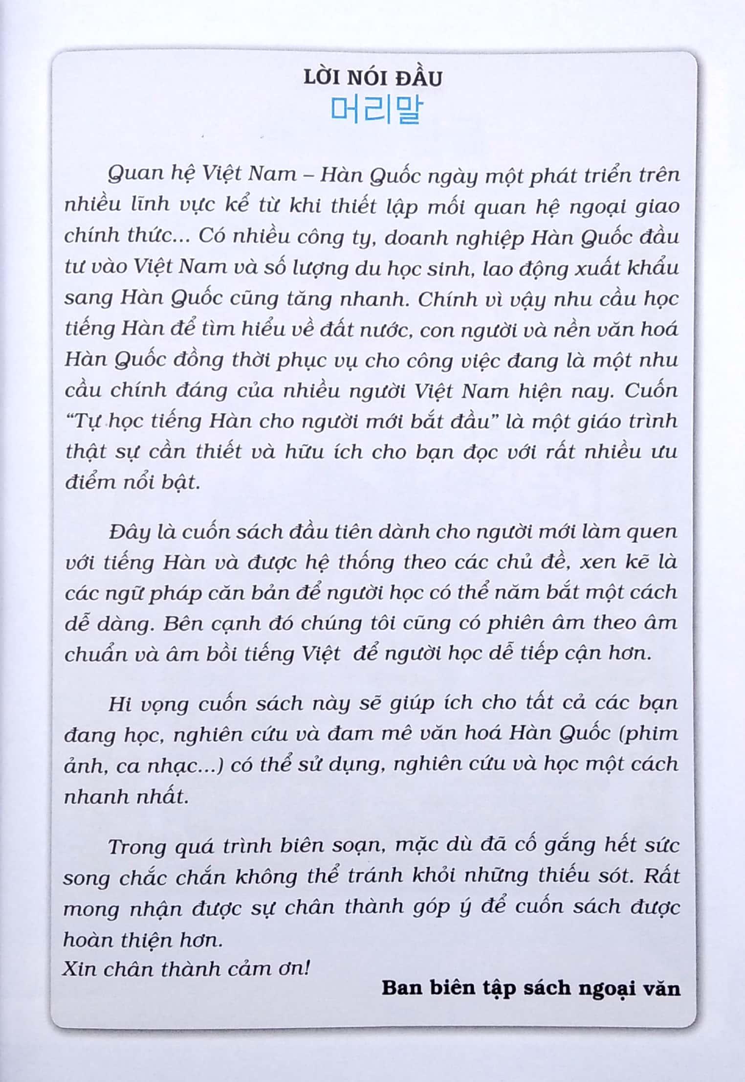 Sách được xây dựng từ cơ bản dành cho những người chưa từng học qua tiếng Hàn đều có thể học được. Cuốn sách được chia thành 2 phần tối ưu cho người tự học: