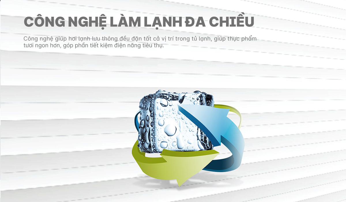 Thực phẩm được bảo quản tốt nhất nhờ công nghệ làm lạnh vòm All-around Cooling Công nghệ làm lạnh vòm All-around Cooling giúp tủ lạnh duy trì ổn định nhiệt độ và hơi nước. Với công