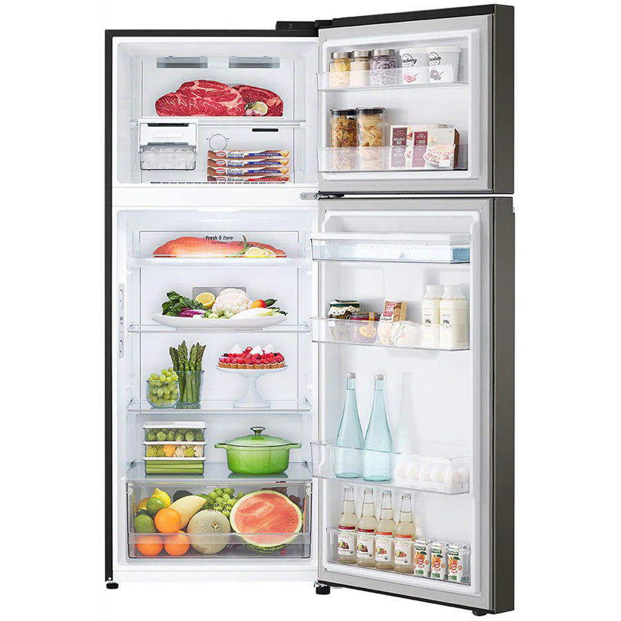 Tủ lạnh LG Inverter 374 lít GN-D372BLA sở hữu kiểu dáng thon gọn, gam màu đen sang trọng kết hợp với mặt cửa tủ là thép không gỉ tạo được độ bóng cao cho tủ. Là kiểu tủ ngăn đá trên quen thuộc nên dễ dàng kết hợp với gian bếp của gia đình Việt.