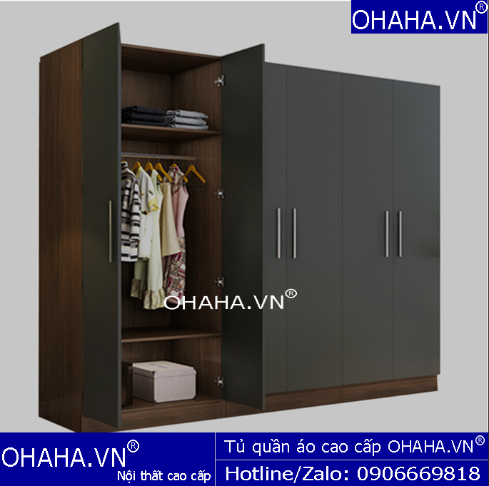 • Tủ quần áo gỗ cao cấp 1012-OHAHA 6 cánh mở với gam màu tối giản tạo cảm giác thư giản mà sang trọng. Là mẫu tủ mang đến phong cách thời thượng và đẳng cấp cho gia chủ.
