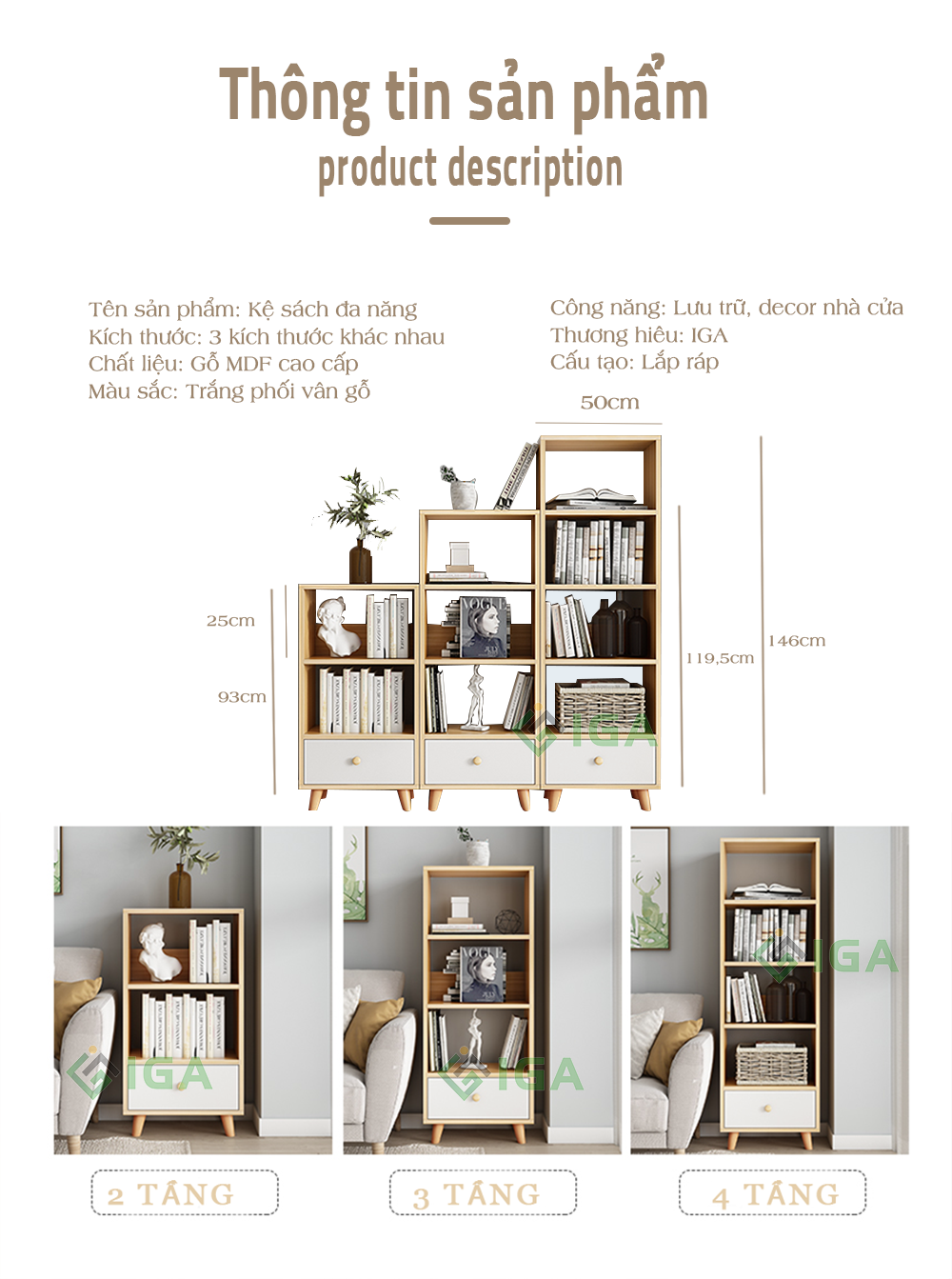 - Tên sản phẩm: Kệ sách để bàn gỗ mdf phủ melamin chống xước thương hiệu IGA - Màu sắc: Trắng - vân gỗ - Chất liệu: Gỗ mdf phủ melamin chống xước - Kích