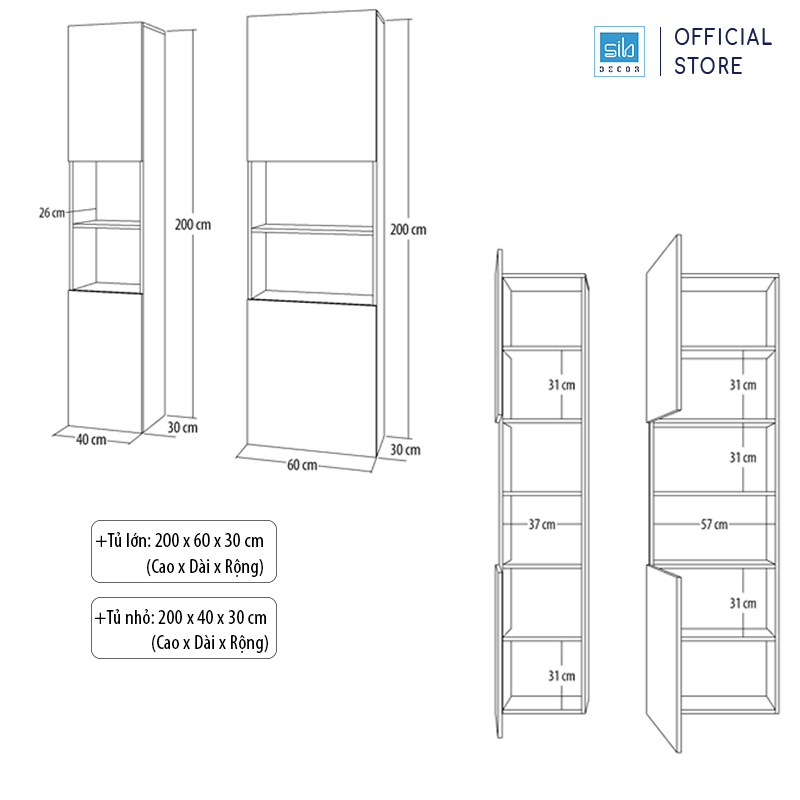 - Thương hiệu: SIB Decor. *Lưu ý: Tủ không bao gồm vật dụng trang trí. Điểm nổi bật: