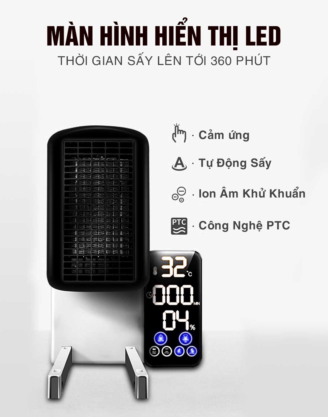 Sản phẩm có thiết kế thông minh. Bảng đèn LED kết nối với động cơ sấy hiển thị rõ ràng, dễ dàng điều khiển, lựa chọn các chức năng phù hợp