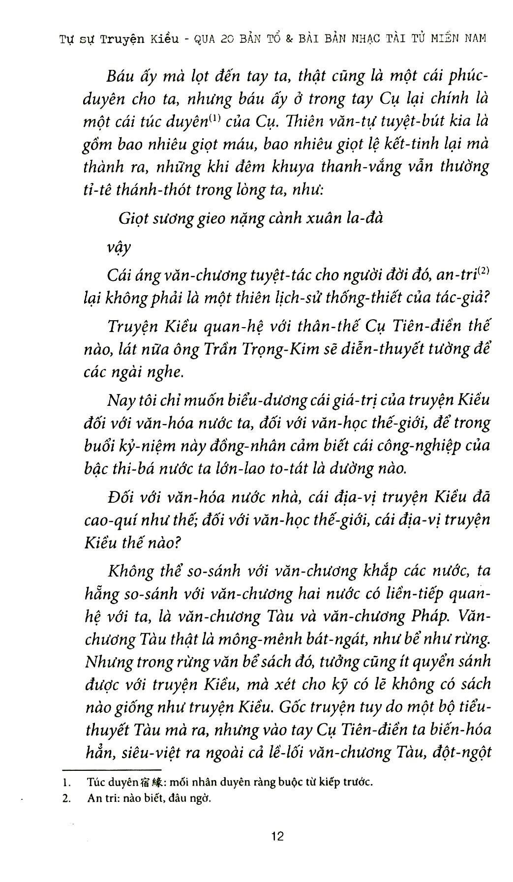 "Tổng tập bài ca Tự sự Truyện Kiều qua 20 bản tổ & bài bản nhạc tài tử miền Nam này được chuyển thể, phổ nhạc, soạn lời như là một phóng tác bằng một