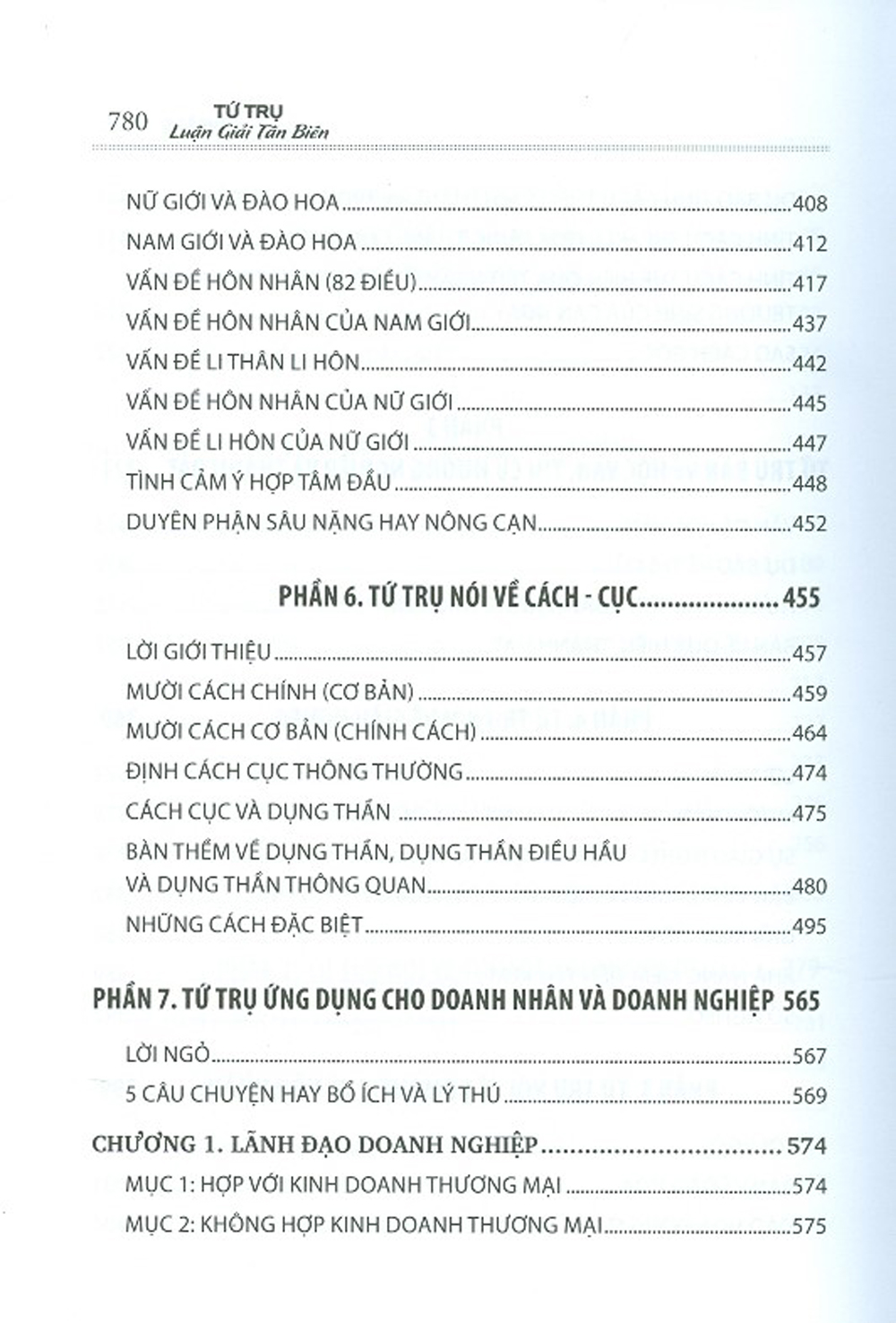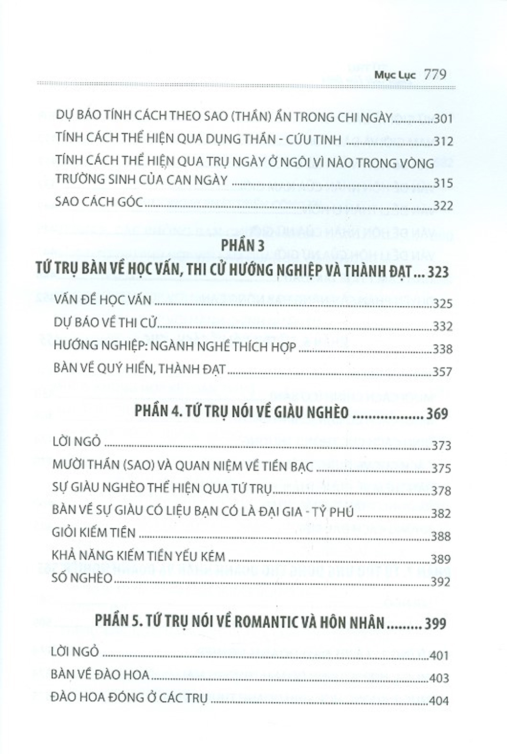 Giải thích thuật ngữ chuyên môn Phần 1: Tứ trụ nói về không vong Phần 2: Tứ Trụ nói về tính cách con người Phần 3: Tứ trụ nói về học vấn, thi cử hướng nghiệp và thành đạt Phần 4: Tứ trụ nói về giàu nghèo Phần 5: Tứ trụ nói về romantic và hôn nhân Phần 6: Tứ trụ nói về cách - cục Phần 7: Tứ trụ ứng dụng cho doanh nhân và doanh nghiệp