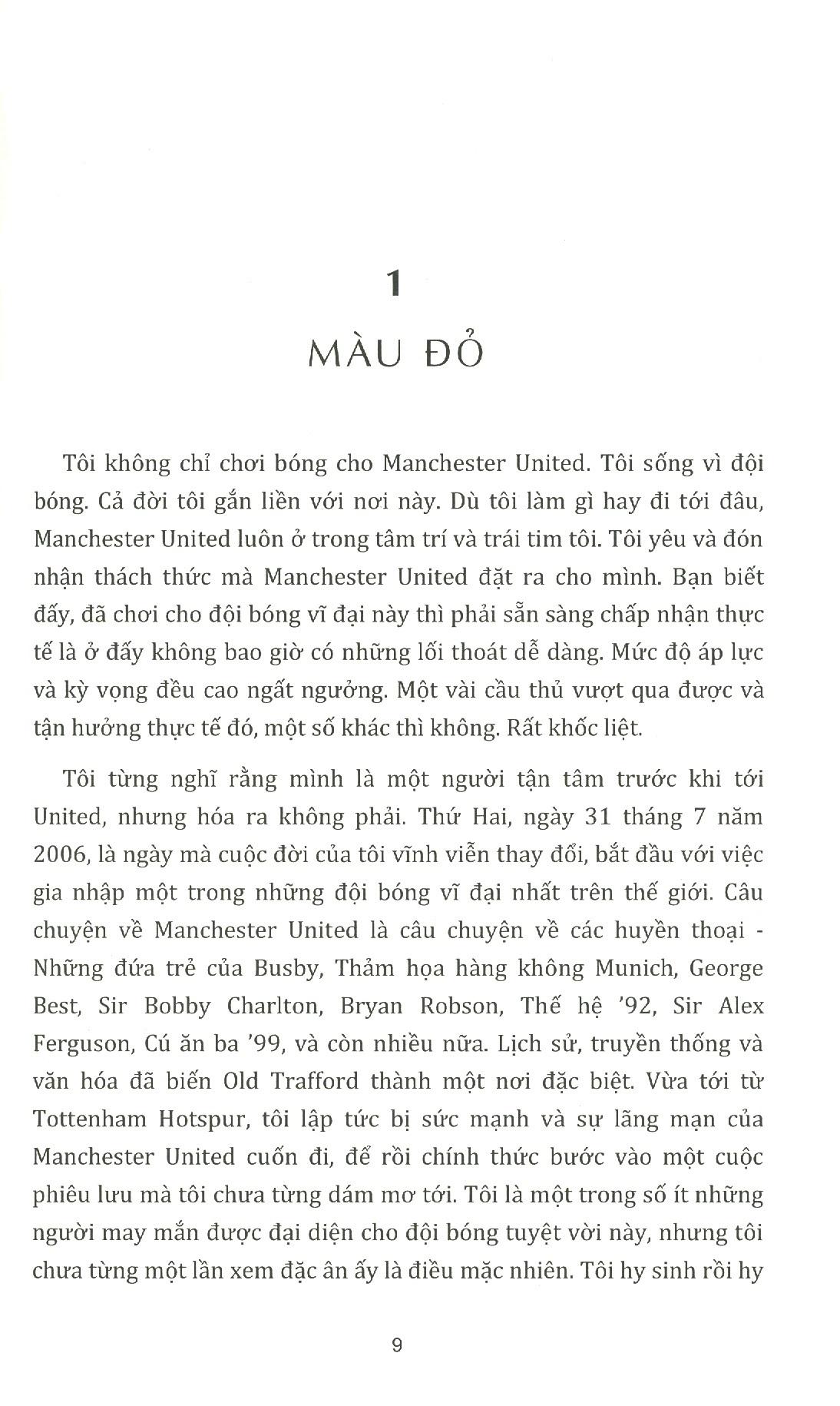 Tôi không chỉ chơi bóng cho Manchester United. Tôi sống vì đội bóng. Cả đời tôi gắn liền với nơi này. Dù tôi làm gì hay đi tới đâu, Manchester United luôn ở trong tâm trí và trái tim tôi. Tôi yêu và đón nhận thách thức mà Manchester United đặt ra cho mình. Bạn biết đấy, đã chơi cho đội bóng vĩ đại này thì phải sẵn sàng chấp nhận thực tế là ở đấy không bao giờ có những lối thoát dễ dàng. Mức độ áp lực và kỳ vọng đều cao ngất ngưởng. Một vài cầu thủ vượt qua được và tận hưởng thực tế đó, một số khác thì không. Rất khốc liệt .