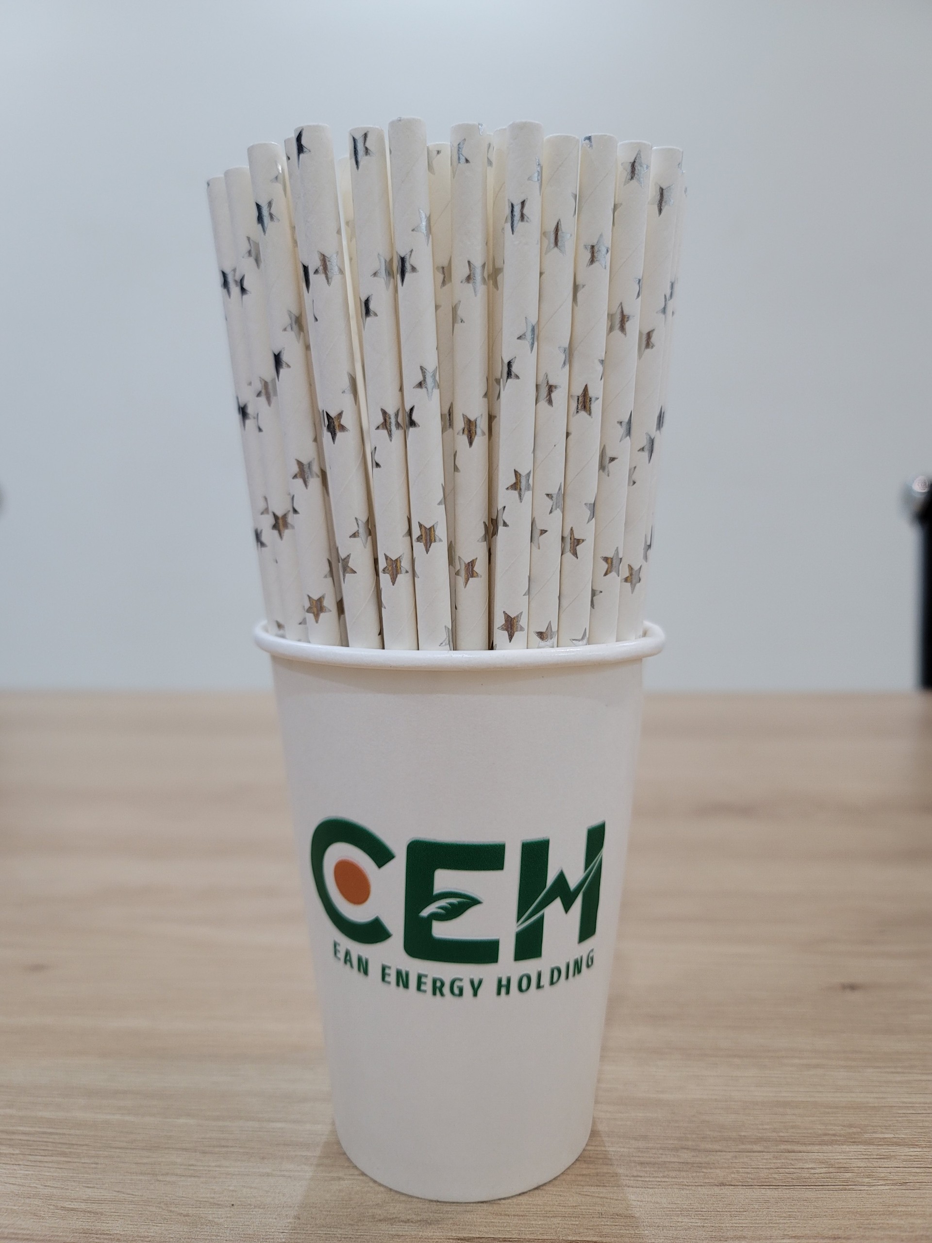 Sản phẩm của công ty Clean Energy Holding Ống hút giấy thân thiện với môi trường, kích thước 12mm x 197mm, phù hợp sử dụng cho các loại đồ uống như trà sữa, sinh tố,