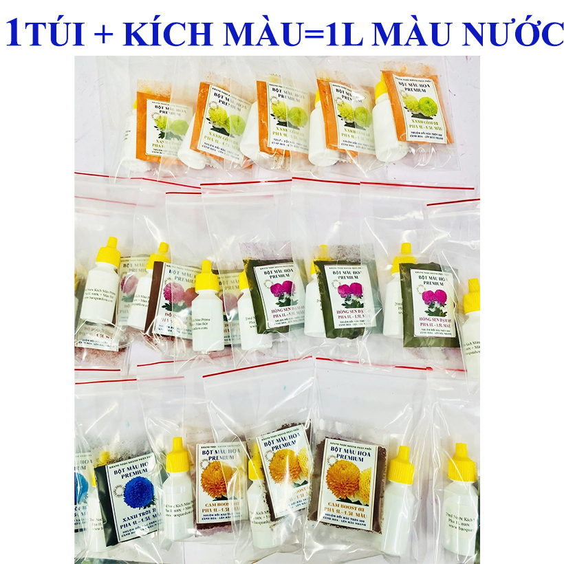 Thuốc Bột Nhuộm Màu Hoa tươi (túi nhỏ 6gr pha 1L nước màu) Premium Color cao cấp 2024 (1 túi bột màu + 10ml nước Kích màu = 1L nước màu nhuộm hoa tươi hoàn