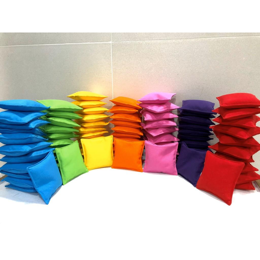 - Hiện TEDU đang làm bộ 7 màu như hình, kích thước thành phẩm là 12x12cm, trọng lượng 100gr/túi. Các trường có nhu cầu thêm màu thì mình inbox nhé. Túi theo màu dễ chia nhóm để hoạt động ạ. CHƠI GÌ VỚI TÚI NÉM:
