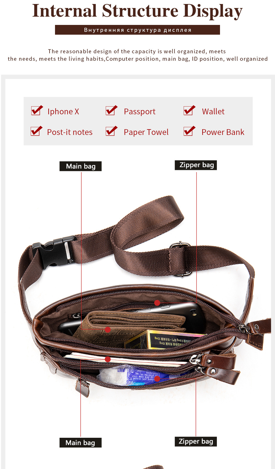 New new Túi Đeo chéo Nam Da Bò Cao Cấp | Đeo Thắt lưng - MSP : A202