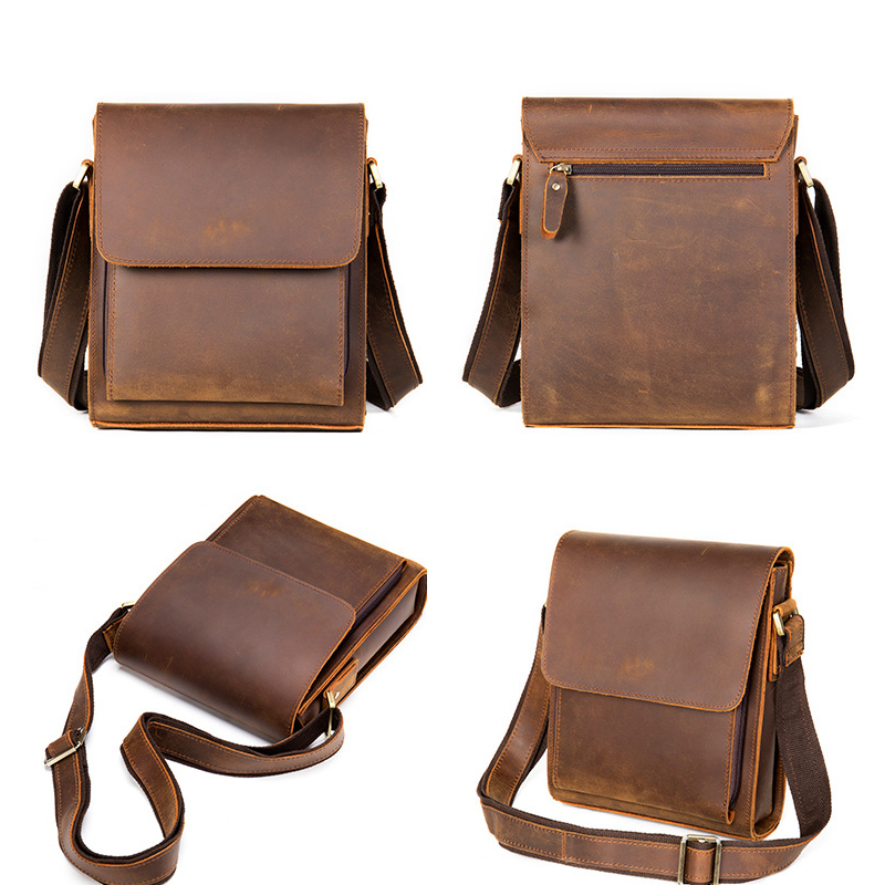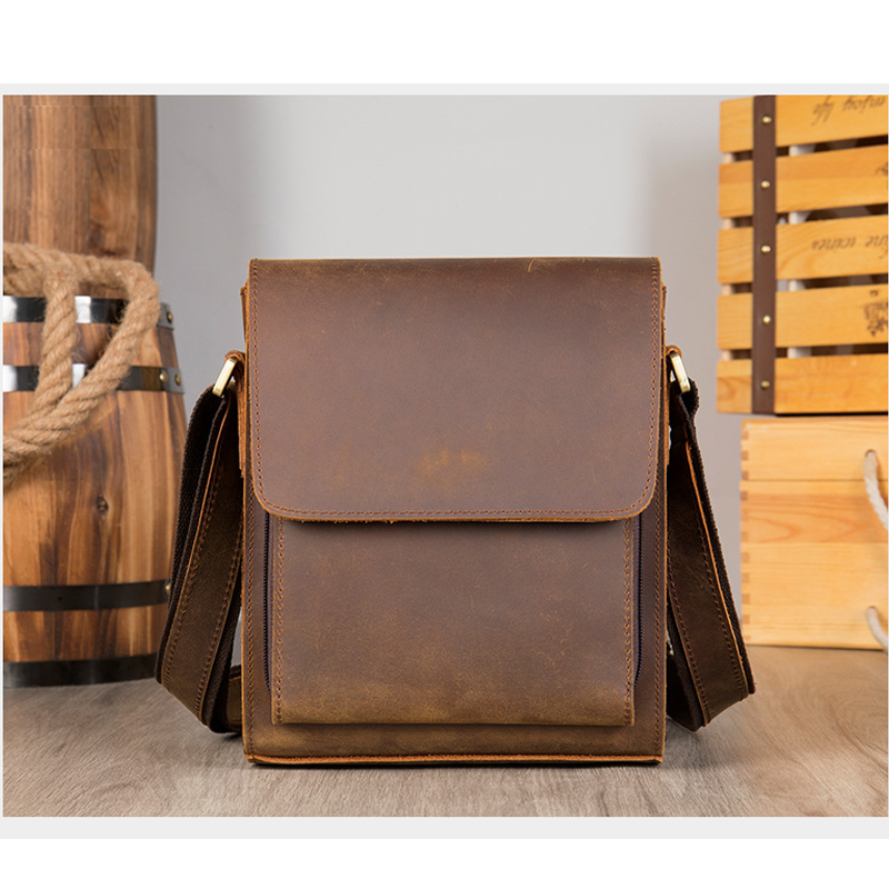 [Da thật] Túi đeo chéo nam da bò sáp TD147 (Nâu sáp) - 100% da thật, BH 3 năm