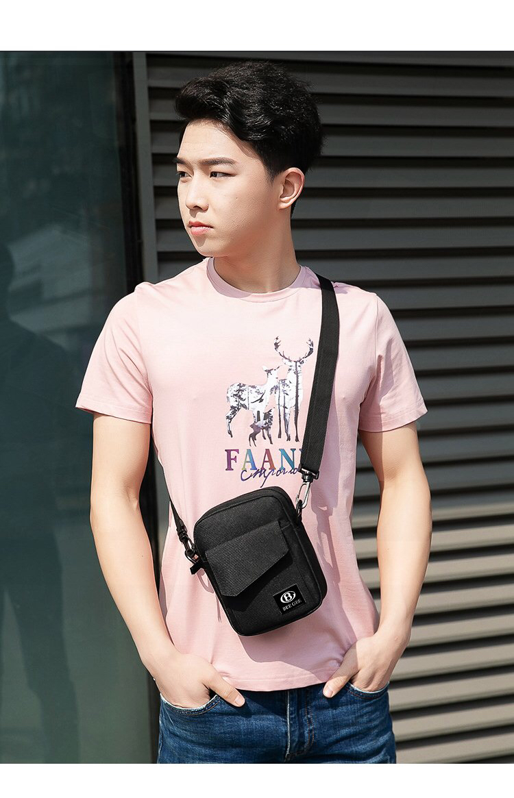 Túi đeo chéo nam ngang nhỏ gọn cao cấp BHM2030 Khá tiện dụng với thiết kế hình hộp chữ nhật gọn gàng cùng màu đen đơn giản dễ dàng kết hợp mọi phong cách thời