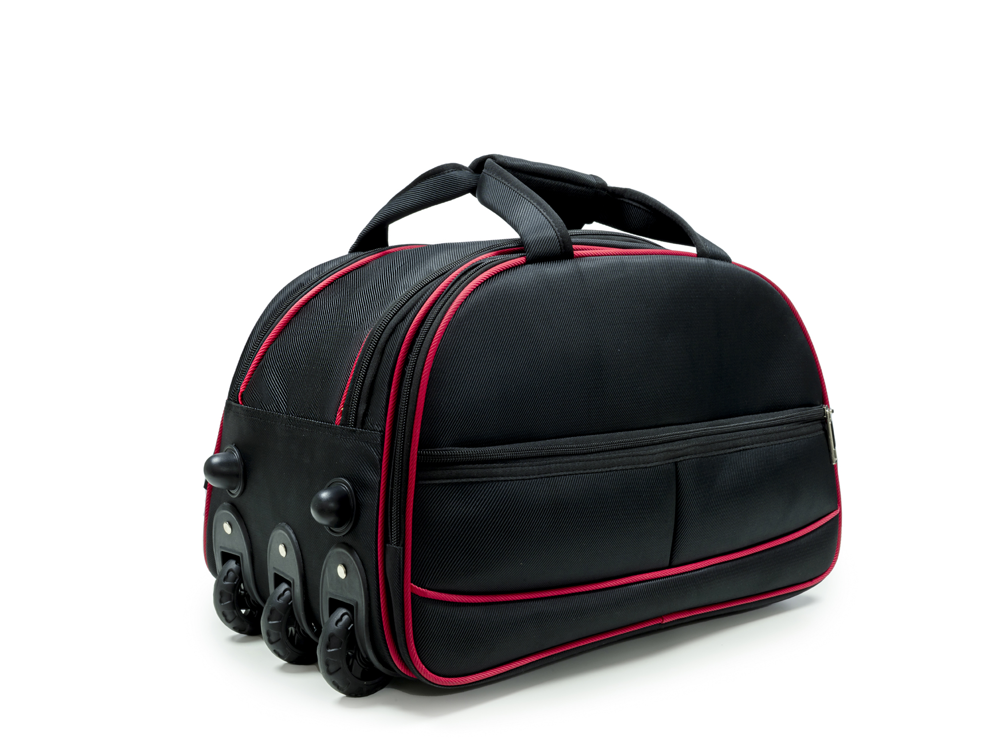 Vali Kéo Du Lịch đen Phối đỏ Có Nắp - 22 Inch được thiết kế từ chất liệu vải Polyester có độ bền cao, chống thấm nước tối ưu giúp bảo vệ hành lý bên