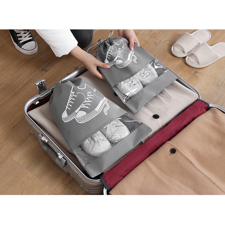 Túi đựng giày dép là giải pháp hoàn hảo giúp bạn có thể sắp xếp gọn gàng và bảo quản tốt cho những đôi giày khi đi xa. Sản phẩm bằng vải không dệt thoáng