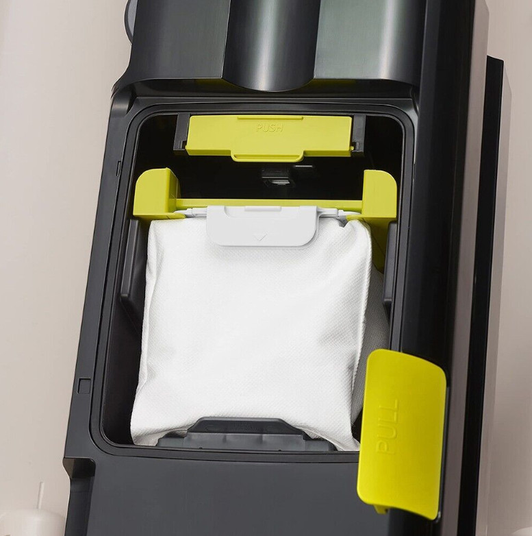 - Túi đựng bụi dùng cho chế độ tự động đổ bụi khi bạn gắn máy vào tháp sạc giúp bạn tiết kiệm thời gian và tránh cảnh bụi bay khắp nơi vô cùng phiền phức. Khi túi đựng bụi đầy, chỉ cần lấy ra bỏ đi, mỗi túi chứa được hơn 3 thùng rác nén.