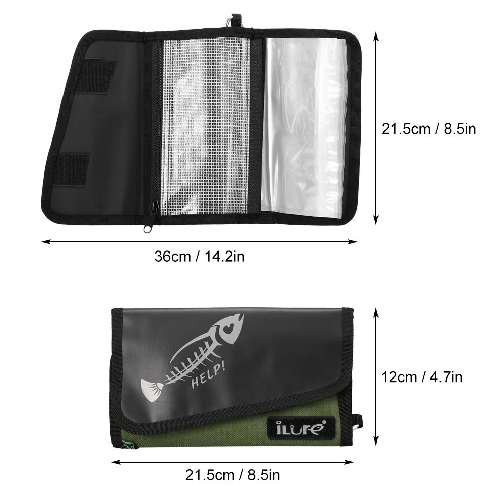 This fishing bag includes two zippered pockets and 6 transparent pockets to keep your fishing lures and other valuables organized and safe. It can be folded into a compact size for easy storage and transport, great accessory for fishing. Features: Anti-tear water-resistant oxford fabric. Zippered interior and exterior pockets keep your valuables dry and secure. 6 transparent pockets for storing soft lures. With a carabiner for attaching to your backpack, fishing jacket, belt loop. Folds compact for easy storage and transport.