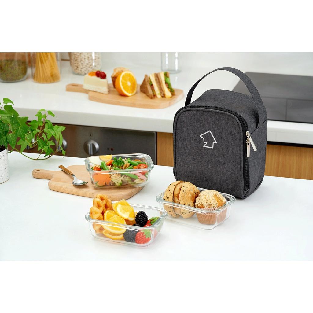 Bộ 3 hộp đựng cơm thủy tinh Lock&lock 430ml và túi giữ nhiệt Glasslock