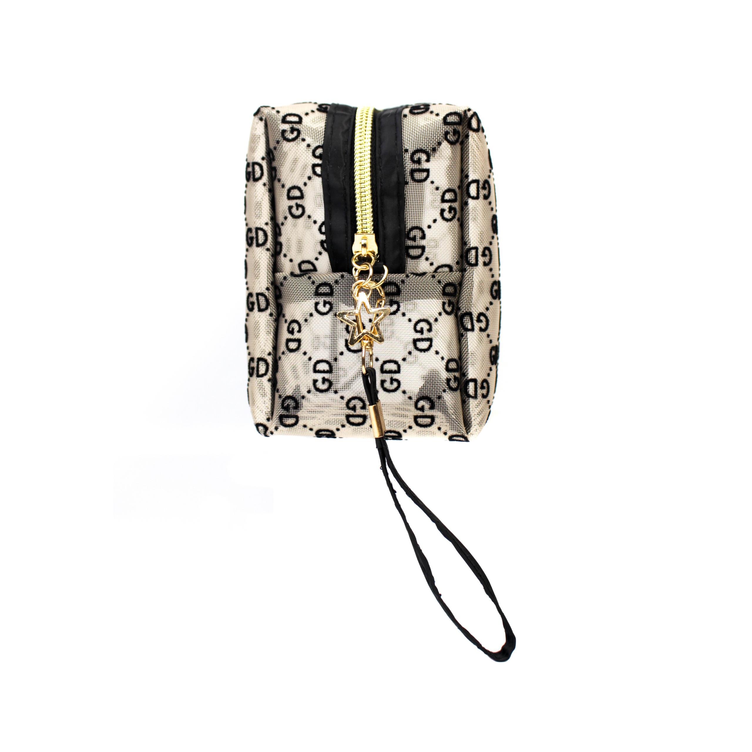 Kích thước: 18x9x12 cm Chất liệu: Nhựa nylon, khoá kéo kim loại Màu sắc: Màu kem họa tiết đen Số ngăn: 1 ngăn lớn Mô tả sản phẩm: Túi đựng mỹ phẩm cao cấp họa tiết hiện đại Care4u