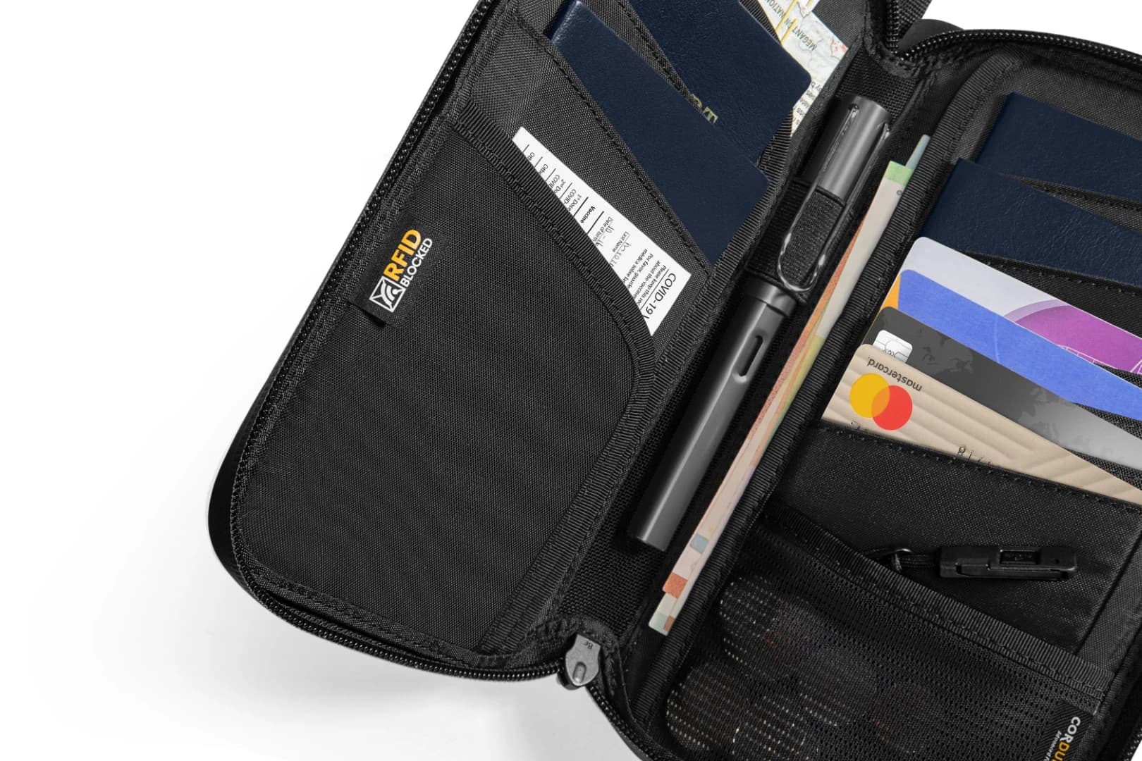 - Bên ngoài thông minh và dễ sử dụng: Một ngăn lớn phía sau bên ngoài của ví để chứng từ lên máy bay, điện thoại thông minh hoặc bất kỳ tài liệu quan trọng nào thường được sử dụng trong suốt chuyến du lịch, mang lại tiện lợi trong việc tiếp cận với những vật dụng cần thiết của bạn; Nhỏ gọn và tiện lợi để mang theo khi du lịch và dễ dàng cầm trên tay với dây đeo cổ tay.