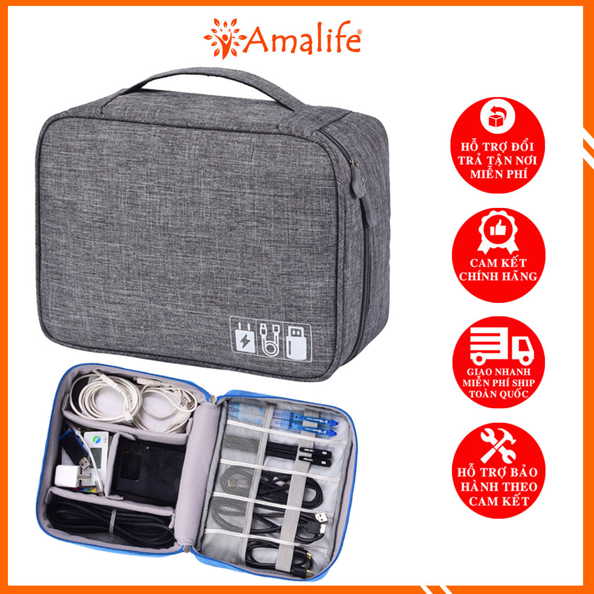 Túi Đựng Phụ Kiện 1 Ngăn Chống Nước, Chống Sốc Cao Cấp – Túi Để Phụ Kiện Điện Thoại Hãng Amalife
