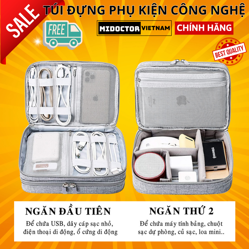 Túi Đựng Phụ Kiện Điện Thoại Máy Tính 2 Ngăn Lớn Cải Tiến Nhiều Ngăn Chống Nước, Chống Sốc Chính Hãng miDoctor ------- Túi Đựng Phụ Kiện 2 Ngăn Lớn Cải Tiến Nhiều Ngăn Chống Nước, Chống Sốc ...