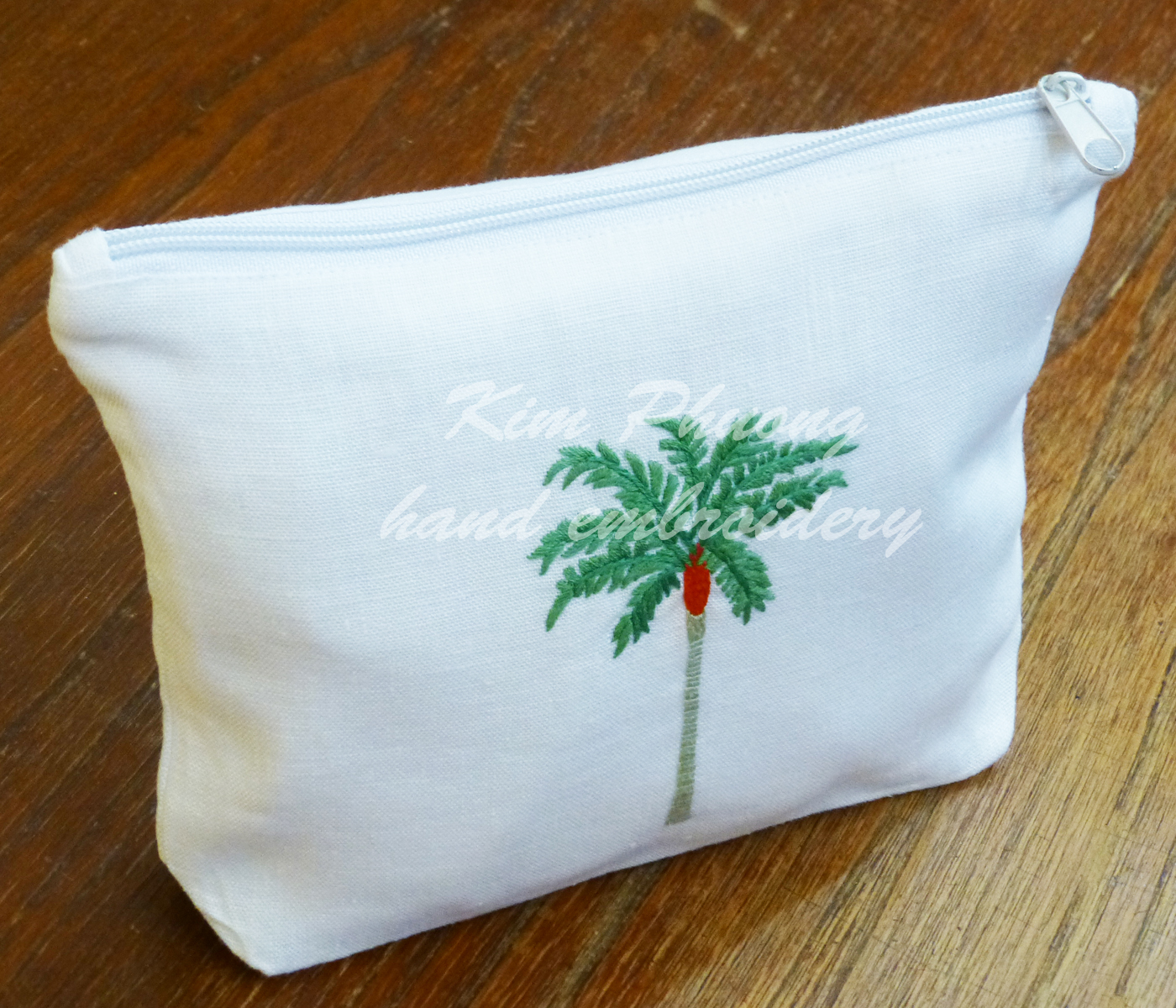 Sản phẩm thêu tay tỉ mỉ, họa tiết sinh động, đường may chắc chắn. Chất liệu linen, có lót bên trong, dây kéo phía trên. Túi dùng để đựng mỹ phẩm, đồ dùng cá nhân, hoặc làm quà lưu niệm rất có ý nghĩa. Giặt máy với xà bông nhẹ, không sử dụng nước tẩy.