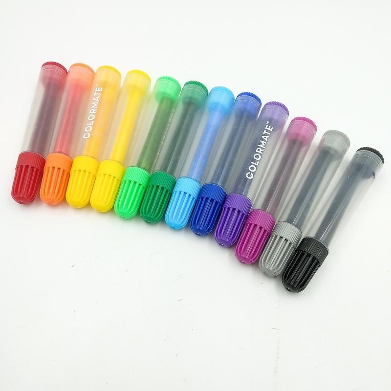 Chất liệu: Thân bút được làm từ nhựa có độ bền cao, đầu bút lông làm bằng sợi Polyester, nét nhỏ, dễ tô vẽ. Mực cao cấp, không chứa màu huỳnh quang, và hóa chất độc hại, an
