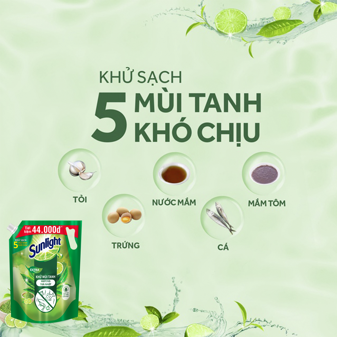 Nước Rửa Chén Bát Sunlight Chanh 100 Sạch Nhanh Xả Bọt Nhanh Rửa Sạch Dầu Mỡ Túi 3.1KG  Nước Rửa Chén SURF Hương Trà Xanh Lá Dứa Túi 3.4KG