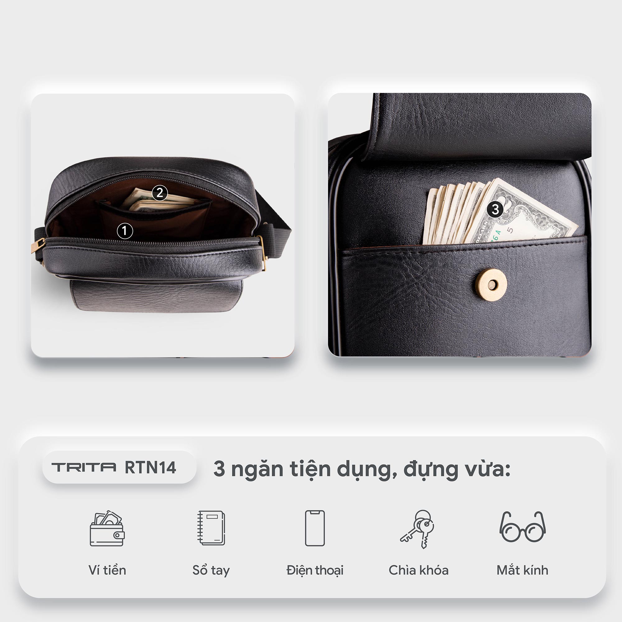 Túi đeo chéo nam mini phối ngăn Trita RTN11 được làm từ chất liệu da tổng hợp cao cấp, bền đẹp trong quá trình sử dụng. Thiết kế túi phong cách cá tính, hiện đại.