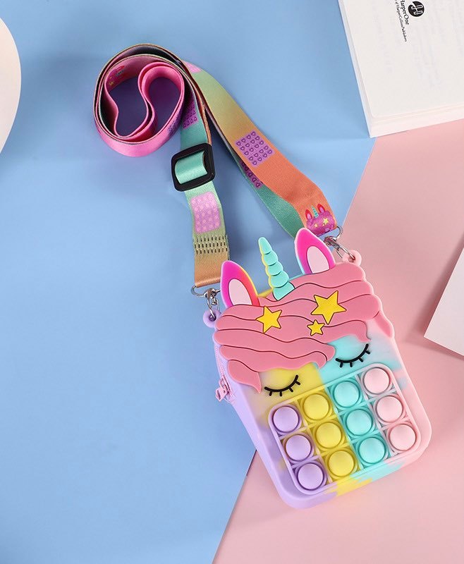 Túi ví Pop It Dễ Thương, Túi Trang Điểm dành cho các bé gái cute đáng yêu. size 14 x 8 cm Món đồ chơi pop fidget yêu thích hình Unicorn dễ thương, phụ kiện