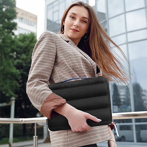 - Thiết kế tối giản, sang trọng phù hợp môi trường làm việc chuyên nghiệp - Vải cao cấp chống nước nhẹ bảo vệ laptop an toàn khi di chuyển - Lớp đệm chống sốc