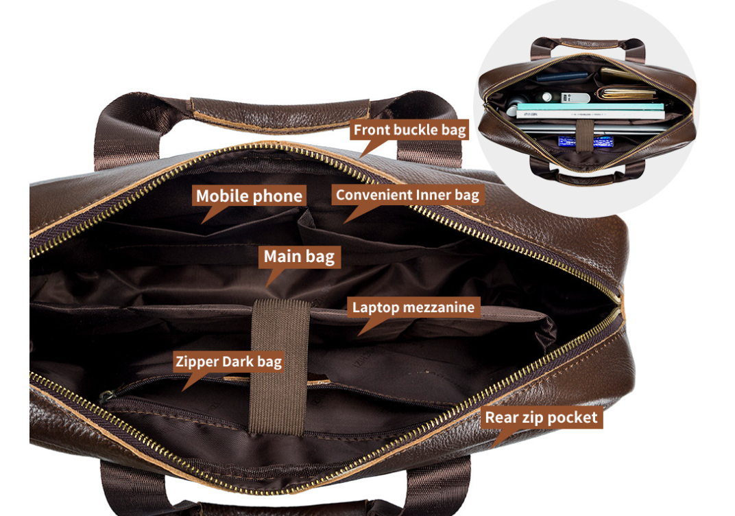 ✨Túi xách nam 100% da bò thật cao cấp phong cách mới 15.6inh