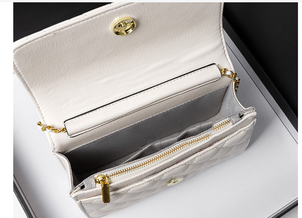 Ví da nữ cầm tay chần bông hình thoi Lata VN73 được thiết kế kiểu dáng lạ mắt, nhưng không kém phần thời trang, sang trọng. Chiếc ví được viền chỉ chắc chắn, bên trong