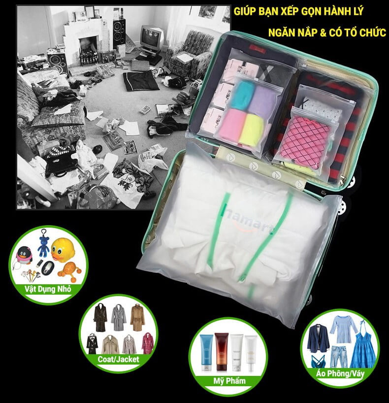 **CHÚ Ý: Túi zip đựng quần áo KO CHỐNG NƯỚC - Chỉ chống thấm ngược, nên nếu đựng đồ ko được mang xuống nước