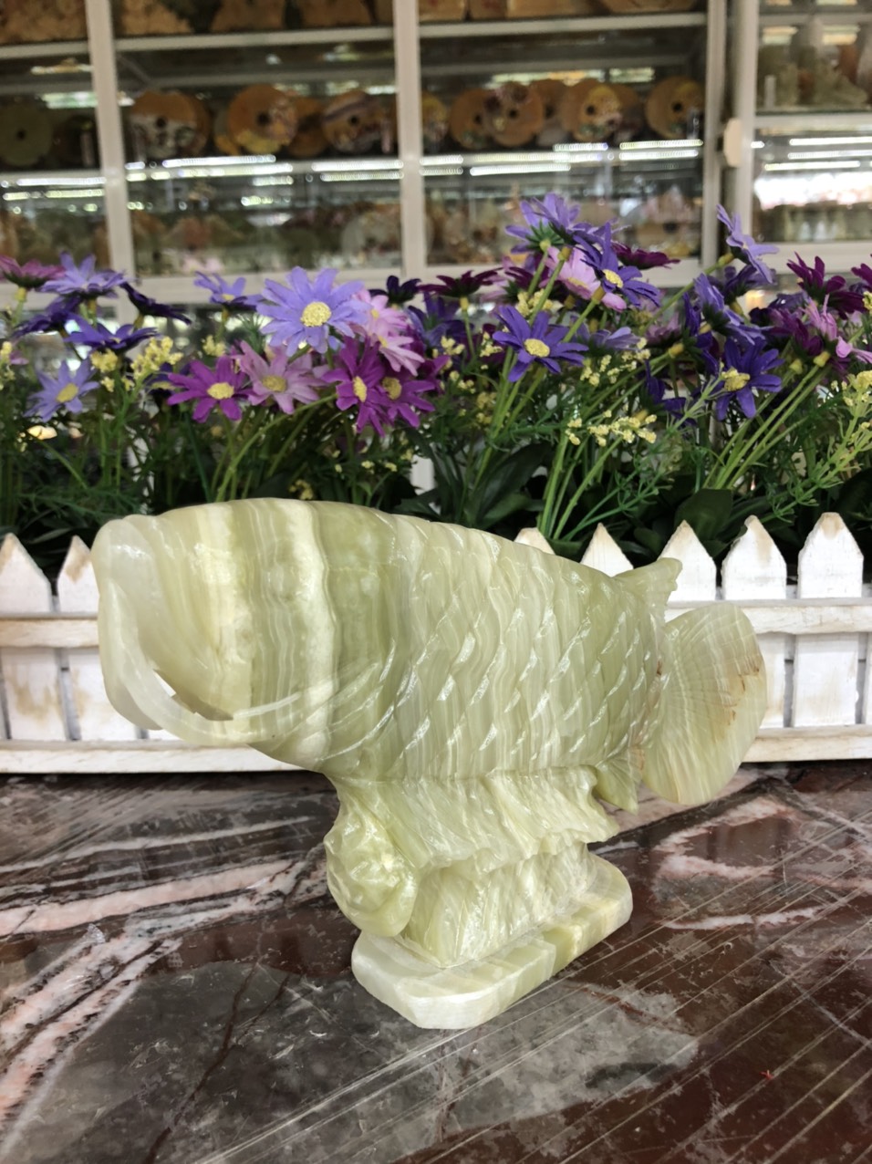 Chất liệu: Đá ngọc onyx Kích thước: Dài 9 cm x Rộng 5 cm x Cao 15 cm Khối lượng: 1,6 kg Theo quan niệm phương Đông, cá chép tượng trưng cho sức khỏe và