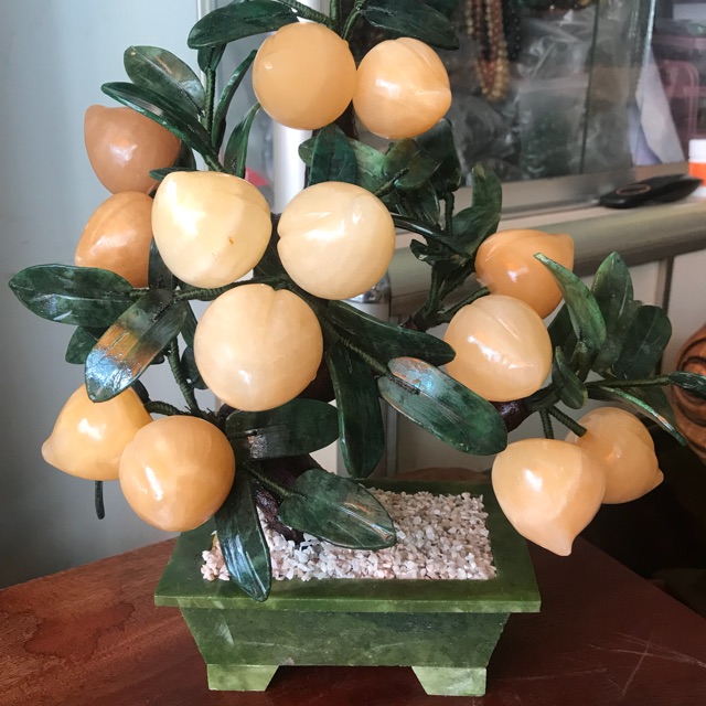 Tượng Cây Đào mới vàng 13 quả canxit vàng tự nhiên cao 40cm x ngang 34cm x sâu 20cm tài lộc hợp ACE mệnh kim thổ Trưng bày phòng khách rất là sang Cây đào tiên tài lộc Vàng là biểu tượng của sự trường thọ cuộc sống mạnh khỏe và sung túc ạ
