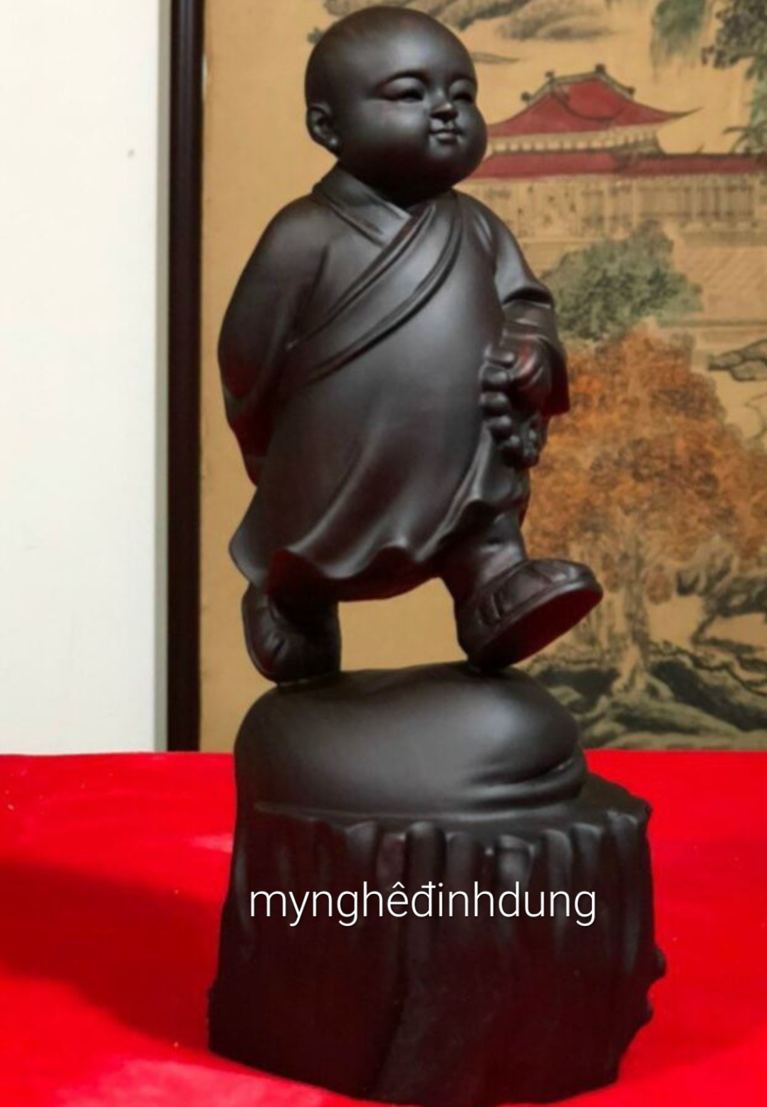 Mua tại Tiktok_ Tượng chú tiểu thong dong được làm bằng chất liệu gỗ trắc đỏ đen tự nhiên 100%