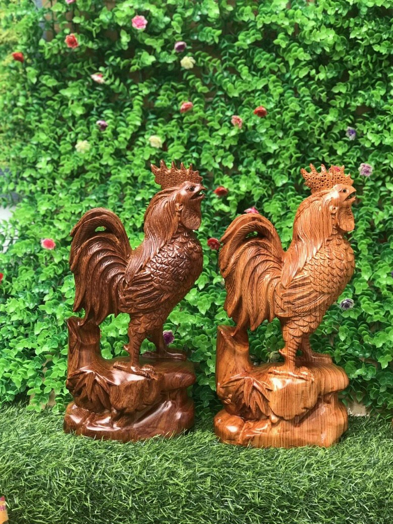Tượng con gà nhất kê cao từ 30cm đến 50cm làm bằng gỗ hương đá nam phi