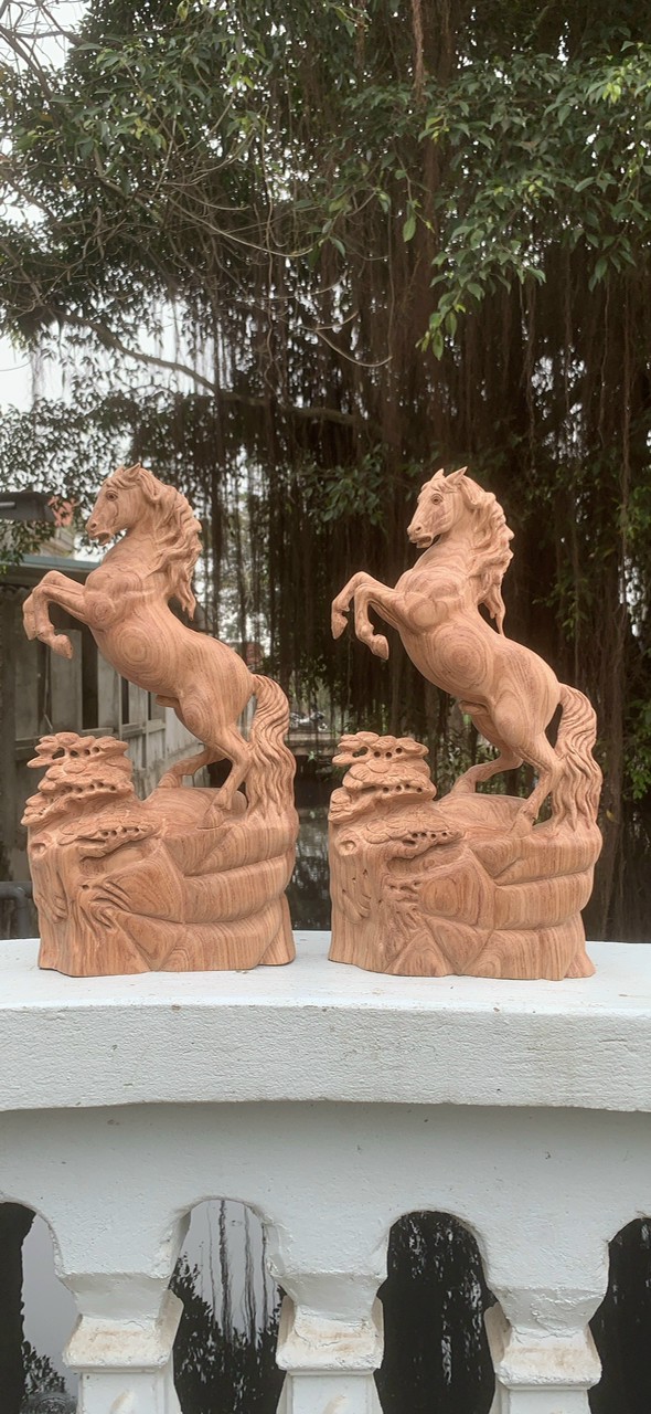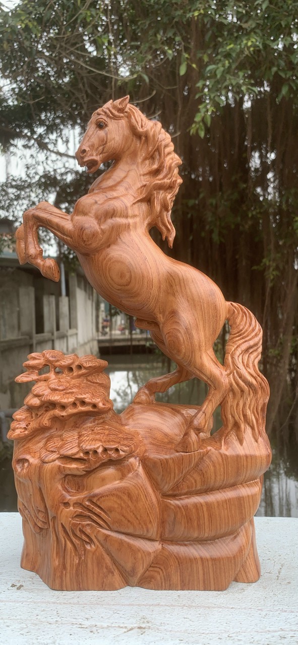 _ Tượng con ngựa nhất mã phi thiên được trạm khắc vô cùng tỉ mỉ tinh sảo kỳ công đi hầu hết tất cả mọi chi tiết góc ngách nội dung hoa văn của tượng đều được ngọt tỉa chỉnh sửa hoàn toàn bằng tay thủ công .Đồng thời tượng được kiểm định rất kỹ lưỡng như cho vào thẩm sấy cho gỗ khô kiệt .Mục đích trống dập nứt vênh mo mối mọt .Kết hợp với trà nhám đánh giấy giáp nhiều lần cho sạch sẽ ,sờ mát lạnh ,Song cho vào phun lót làm bóng mờ để giữ lại mầu sắc vân gỗ tự nhiên .Tượng được làm và hoàn thiện do bàn tay khối óc tài hoa từ những người thợ giàu kinh nghiệm cũng như tay nghề cao trong làng nghề truyền thống .Chính vì thế tượng con ngựa đã đáp ứng đầy đủ những tiêu trí ( Đẹp bền rẻ ) Thẩm mỹ nghệ thuật với chất lượng tuyệt vời