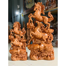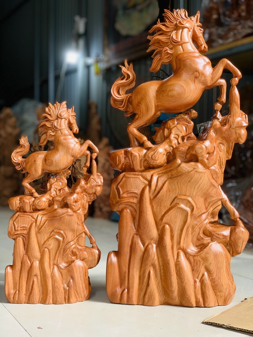 Mua tại Tiktok_ Tượng con ngựa song mã uyên ương được làm bằng chất liệu gỗ hương đá tự nhiên 100%