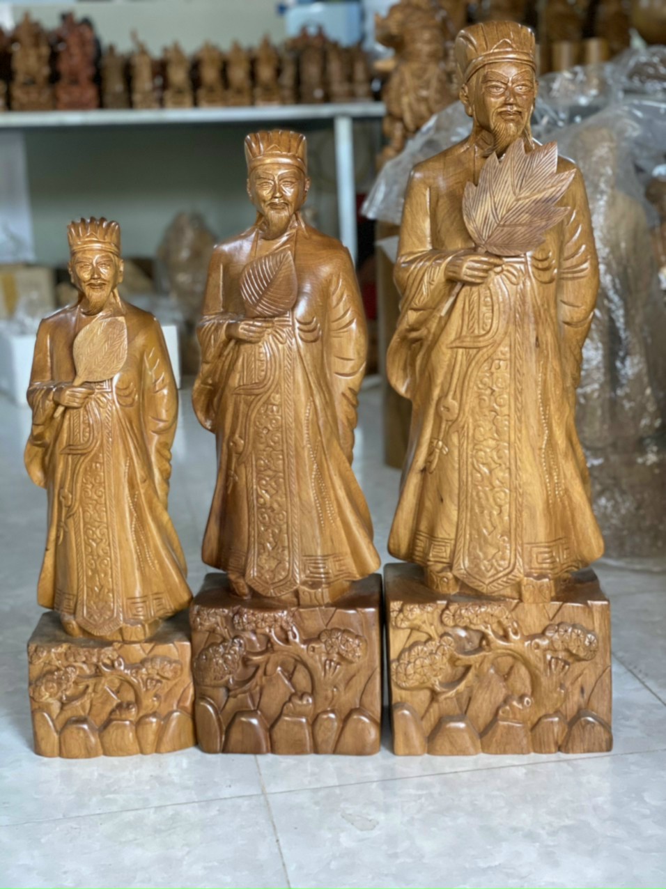_ Bộ tượng tam đa phúc lộc thọ được làm bằng chất liệu gỗ bách xanh tự nhiên 100% _ Kích thước cao 30 ngang 10sâu 9cm _ Bộ tượng tam đa phúc lộc thọ