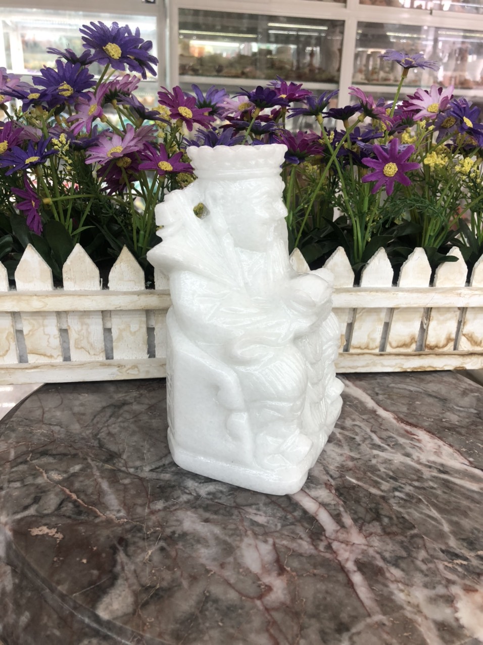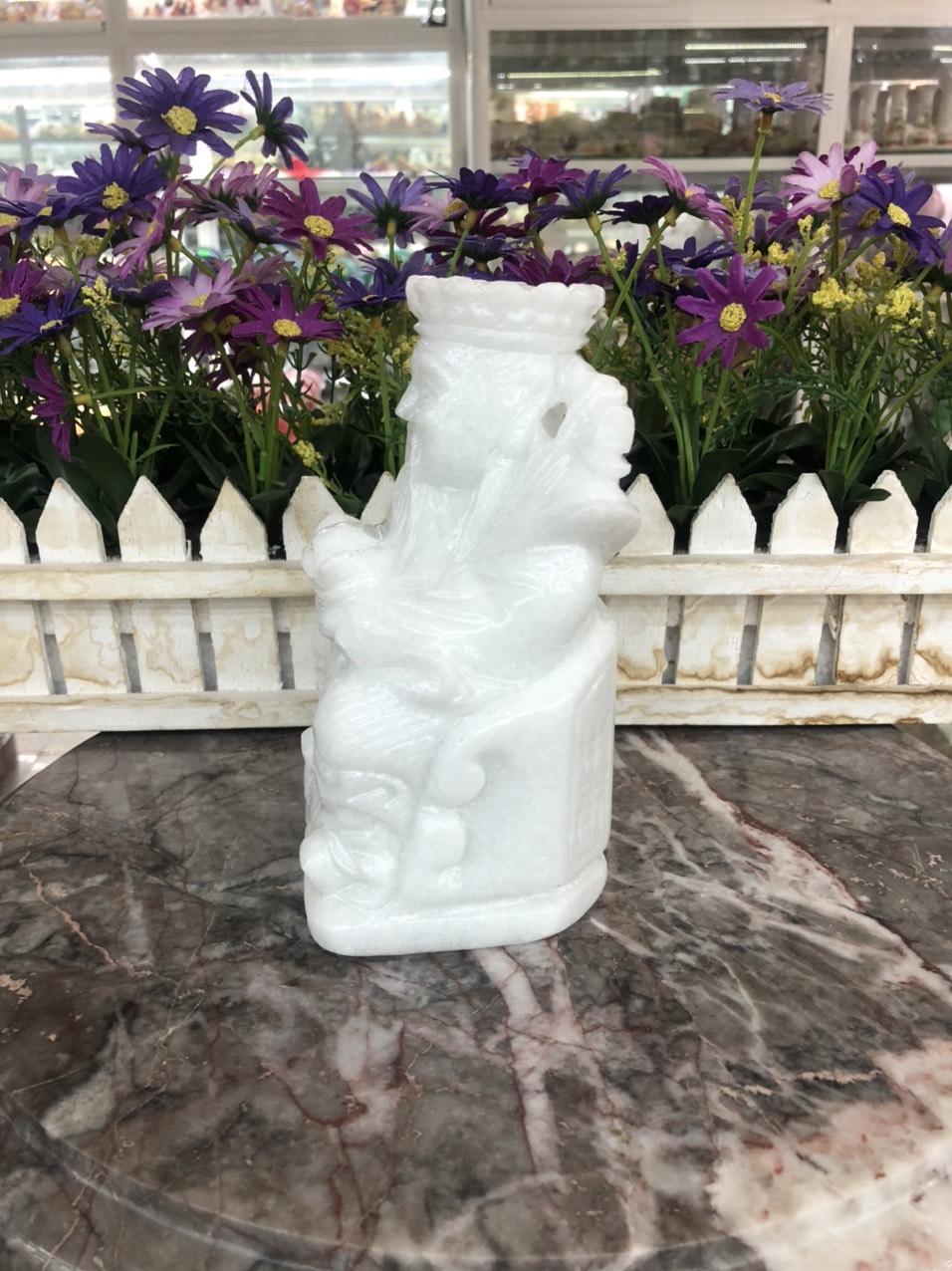 Tượng Phật Bà Quan Âm Đá Lưu Ly Trắng Để Xe Hơi hoạc Bàn cao 13cm đk 7cm mệnh Kim mệnh Thủy ạ - Tượng Phật Bà Quan Âm Đá Lưu Ly Trắng Để Xe