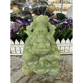 Chất liệu: Đá ngọc hoàng long Kích thước: Dài 15 cm x Rộng 10 cm x Cao 20 cm Khối lượng: 4,4 kg Thần Tài là vị thần trông coi tiền tài, vàng bạc, mang