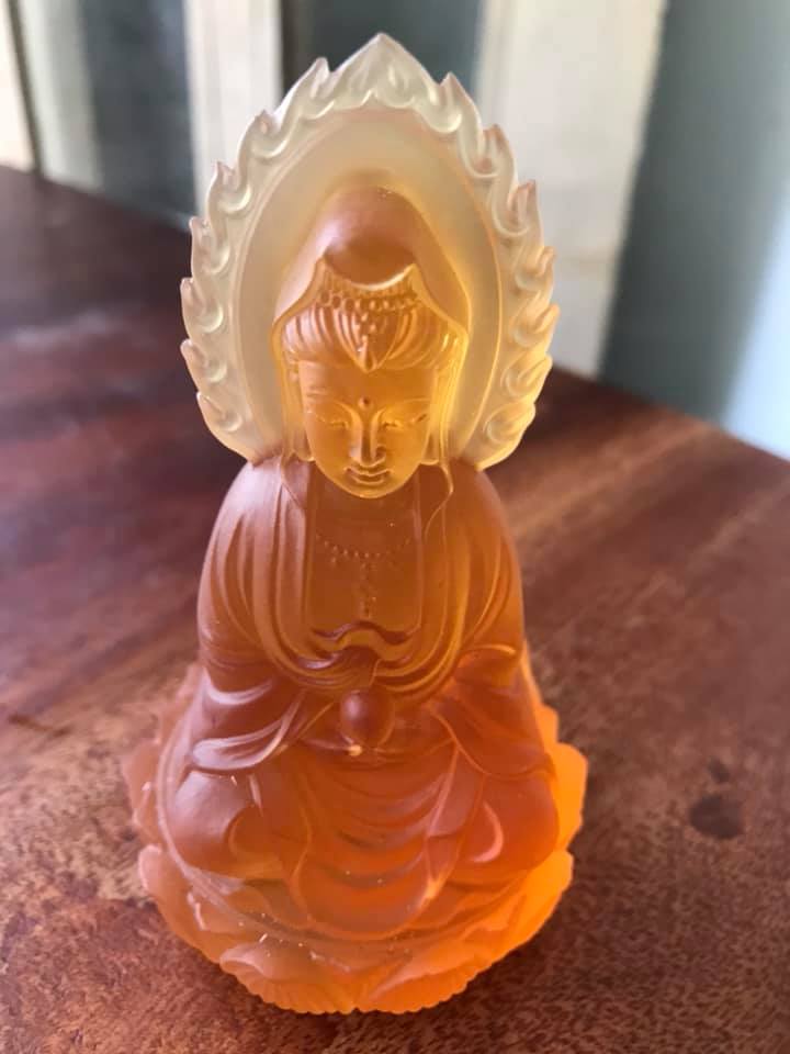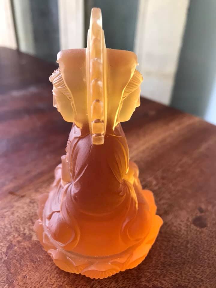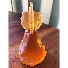 TƯỢNG PHẬT BÀ QUAN ÂM 2 MẶT ĐÁ LƯU LY VÀNG ĐẬM ĐỂ TRONG XE HƠI 10cmx6cm - HÀNG PHONG THUỶ SUNNY Q8