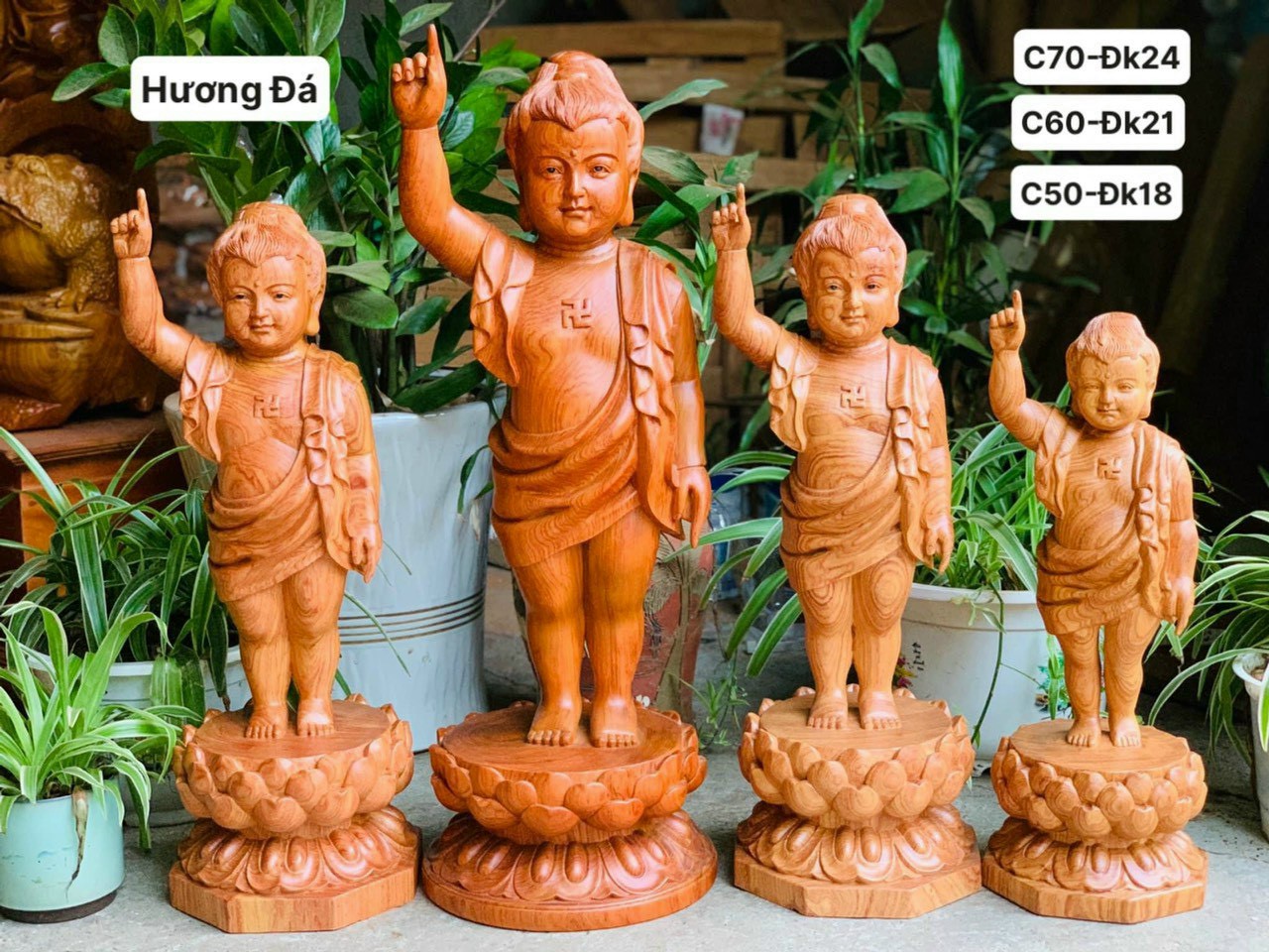 Tượng Phật đản sinh đứng trên đài sen gỗ hương đá | Đồ Gỗ Hướng Mai