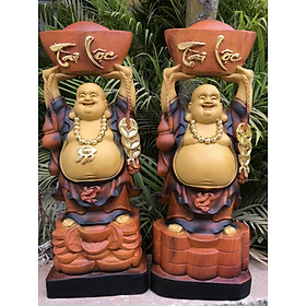 ✨Tượng phật di lặc dâng thỏi vàng bằng gỗ hương đá pu giả cổ kt cao 60cm