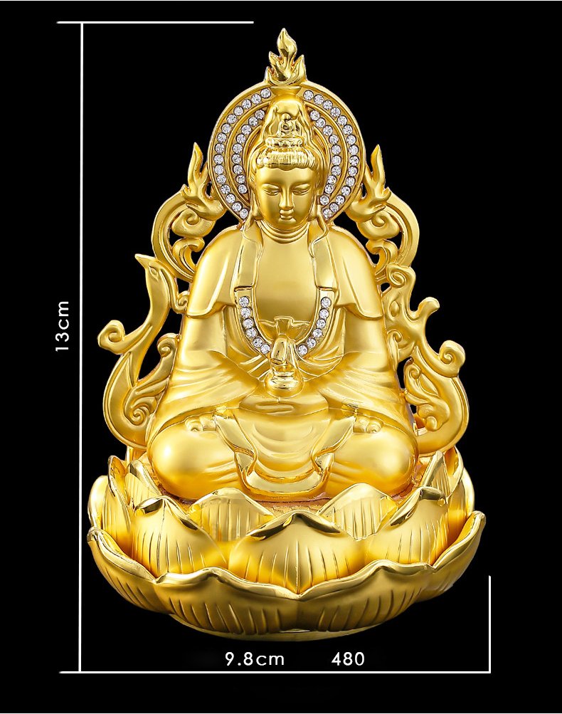 ✨Tượng Phật Quan Âm bằng hợp kim mạ vàng ngồi đài sen để xe ô tô C13 (Tượng 2 mặt)